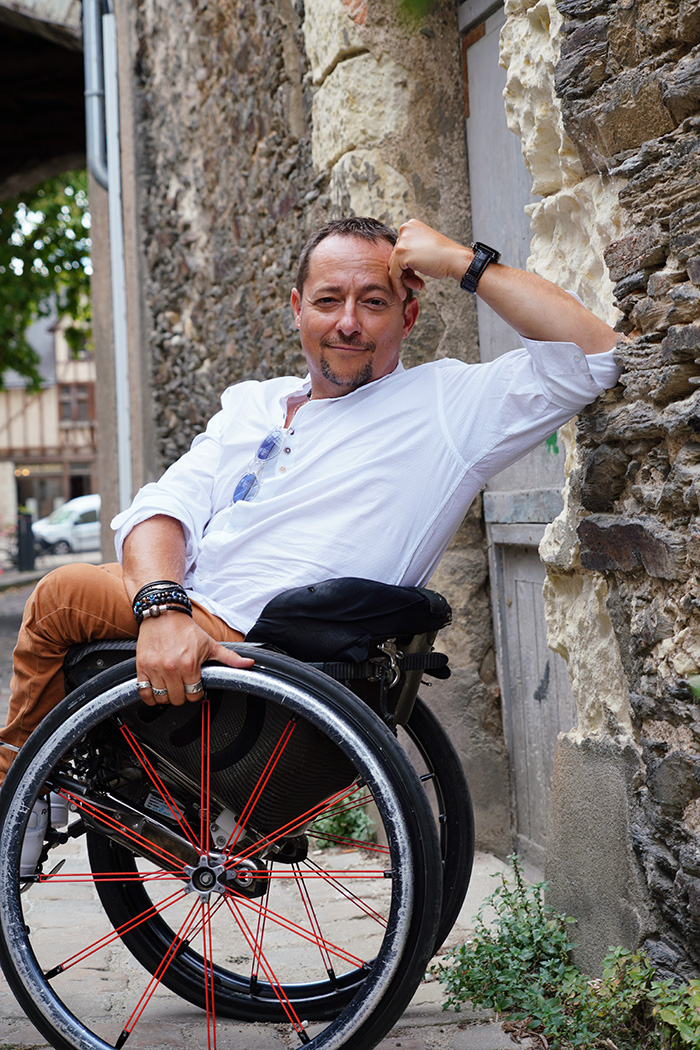 Né avec plusieurs malformations et paraplégique depuis l’enfance, j’ai grandi entre une famille aimante (deux sœurs formidables) et des hôpitaux : +70 mois et +20 opérations. Mon rêve d’enfant n’était pas de devenir astronaute : juste devenir “un garçon normal”. Car la réalité était moins fleuve tranquille que descente en rafting sans casque.